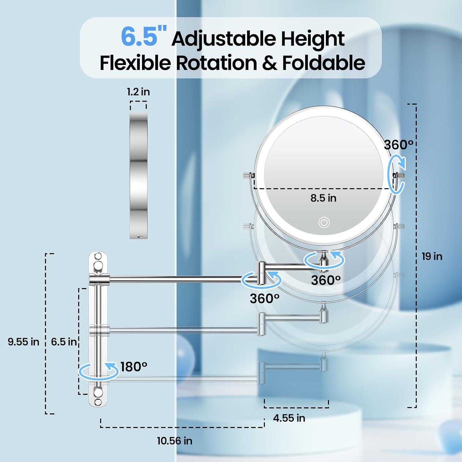 【6.5'' Height Adjustable & 360° Rotation】Indulge in ultimate convenience and comfort with our makeup mirror. With a 6'' height range, you can find the perfect height to achieve a comprehensive view of your hair and face. Smooth 360° rotation allows for effortless adjustments to optimal viewing angles. Say farewell to uncomfortable positions and limited visibility, and indulge in a comfortable and enjoyable beauty session with our versatile and innovative makeup mirror.