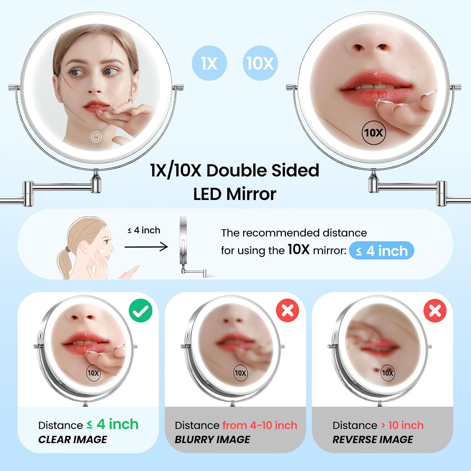 【10X Magnifying Mirror】The 10X magnification lets you perform precise tasks such as applying mascara or inserting contact lenses with ease. (The use of 10x magnifier will produce a sense of vertigo, and the distance from the mirror more than 4 “when the image will be blurred or even upside down, this is the normal physical phenomenon of the magnifier, please consider carefully before purchasing)