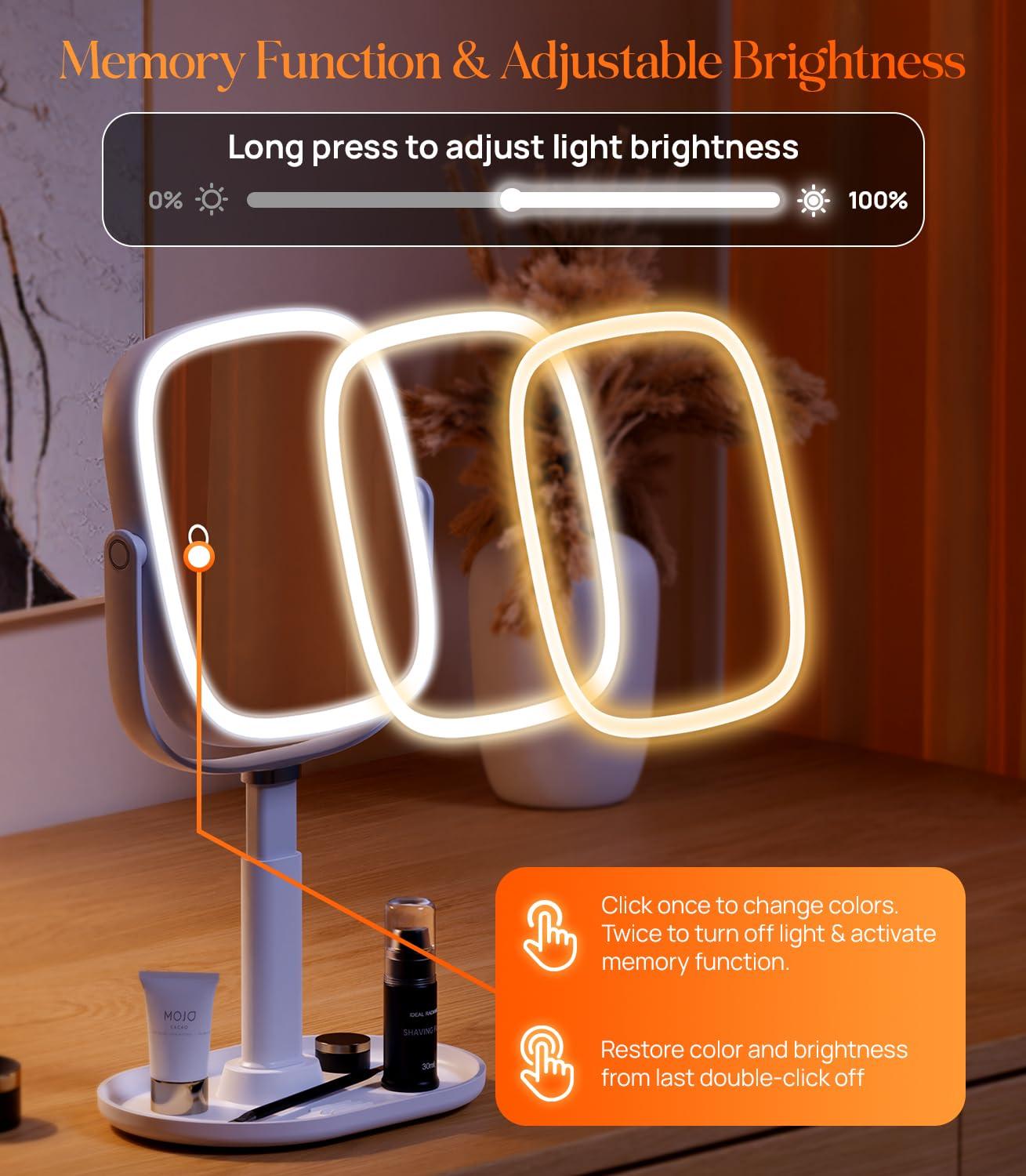 【Double Tap to Turn Off & Memory Function】This vanity mirror with lights desk makes life easier with a simple double tap to turn off the lights. Plus, it remembers your favorite color and brightness settings, so you don’t have to adjust them every time—just pick up where you left off