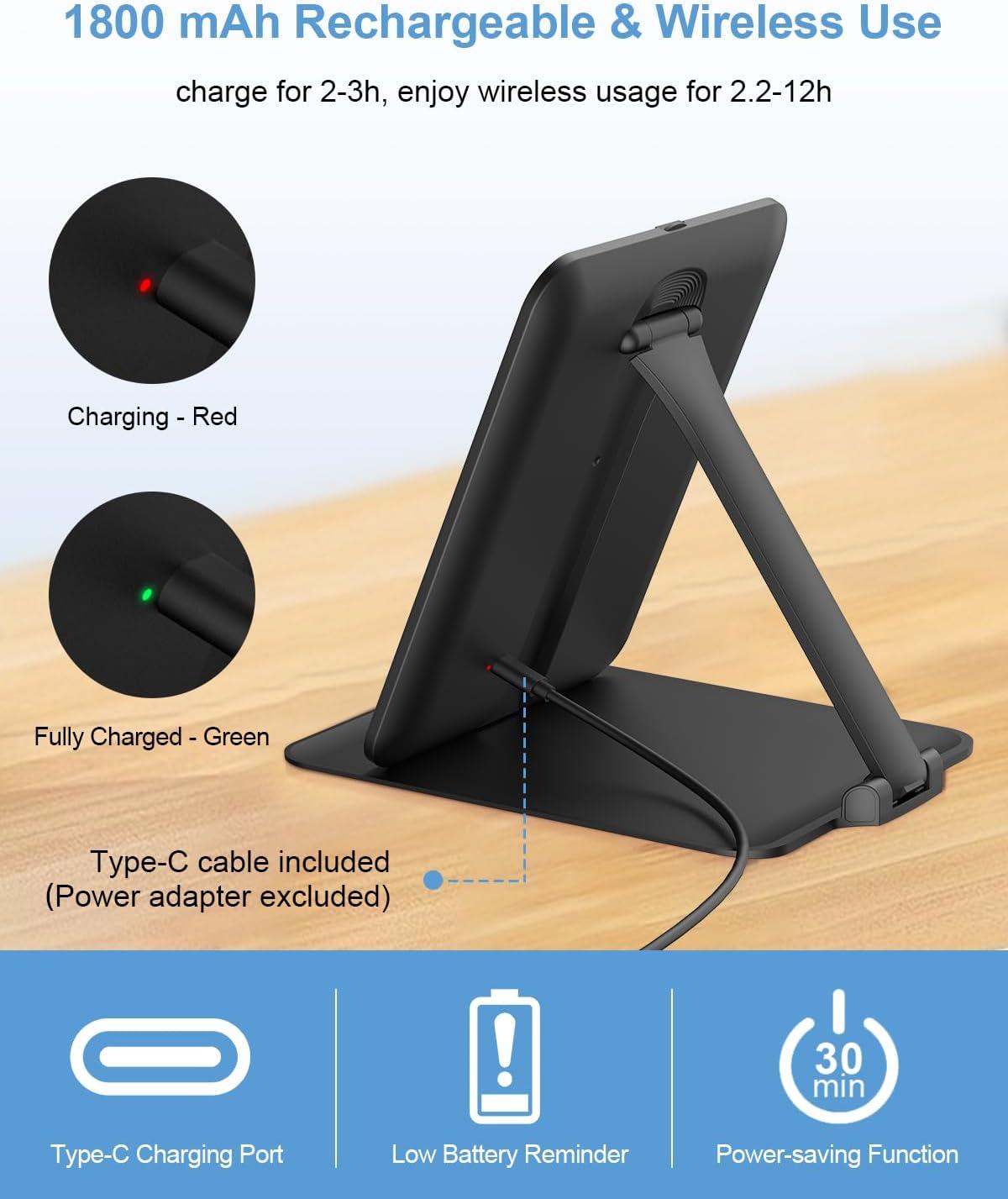 【1800mAh Rechargeable Battery and Wireless Use】Built-in 1800mAh lithium battery, it only takes 2-3 hours to charge for 2.2-12 hours of operation, eliminating the need to worry about battery replacement. Comes with a Type-C cable for convenient charging from power banks and sockets (the indicator light flashes red during charging and turns green when fully charged)